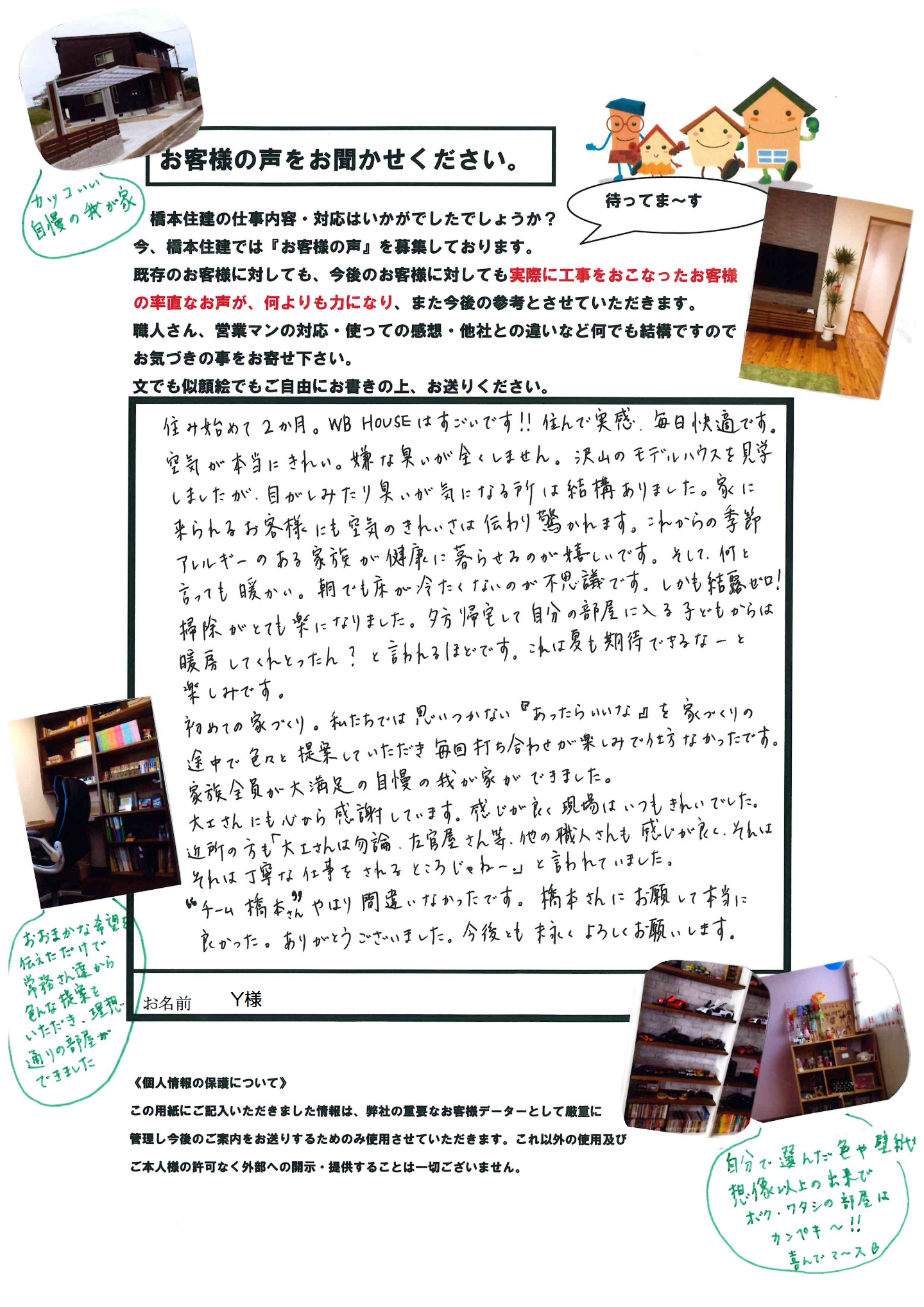 1年過ごして橋本さんが最初に説明してくれた通りの快適な空間だど実感しています。家族のスペースも増え体調にも良い家に住むことができ橋本住建さんにお願いして本当に良かったと思います。